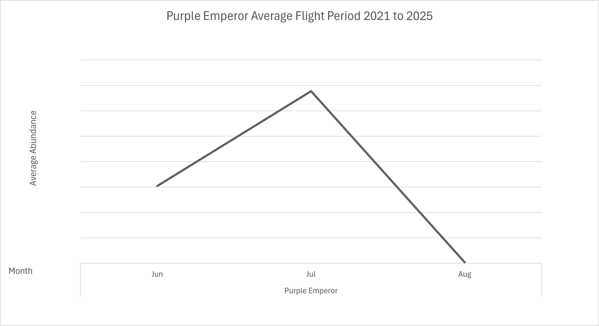 The Purple Emperor is one of Northamptonshire’s most magnificent butterflies, and each year they draw many visitors to the county hoping to see them. For most people, it is the male butterfly that they really hope to see, as despite it being smaller than the female it has a beautiful purple colour across its upperwings which the female lacks. The best place in the county to see Purple Emperors in terms of abundance and also the likelihood of seeing “grounded” males is the Fermyn Wood complex, particularly in Lady and Souther Wood. The males emerge slightly before the females and can spend lengthy periods of time on the ground extracting minerals from the woodland tracks. Once the females emerge their attention turns to mating and they spend a lot more time flying around the canopies of the Oaks and the Sallows. In recent years the Purple Emperor has increased its distribution significantly and has spread all over the county. They can now be seen in nearly all of our deciduous woodlands. Other good sites to look for Purple Emperors include Bucknell Wood, Hazelborough Forest and Wood and Salcey Forest.