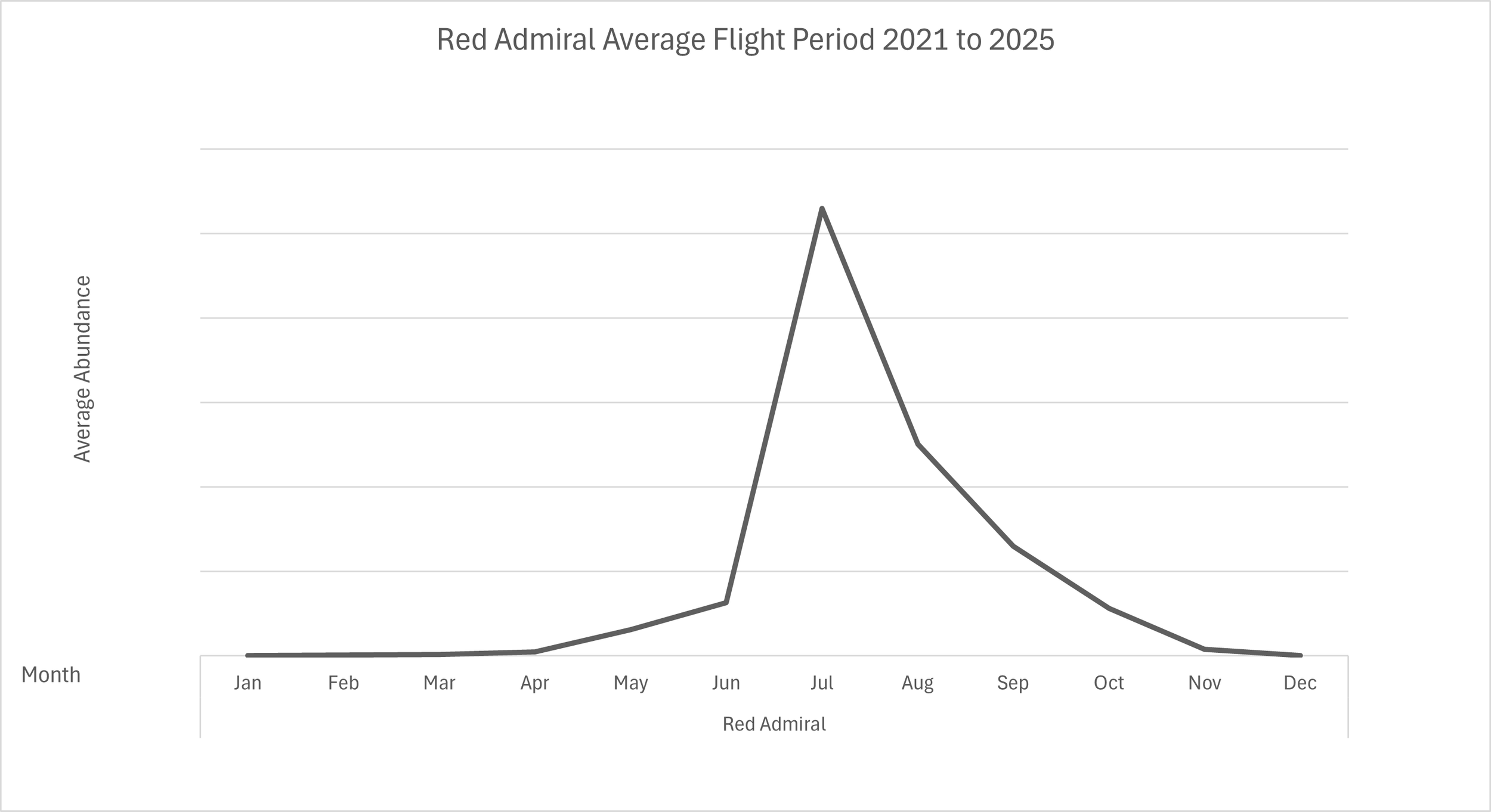 The Red Admiral is a common and widespread butterfly in Northamptonshire. Although they are chiefly a migrant in recent years they have attempted to overwinter, as such it is one of the few butterflies that can be recorded in every month of the year. As with all migrants, their abundance can fluctuate quite dramatically each year but occasionally we can see bumper migrations such as in 2023 when they were recorded in large numbers all over the county. One of the best times of the year to admire these colourful butterflies is in the autumn as they busily feed on fallen fruit and flowering Ivy.